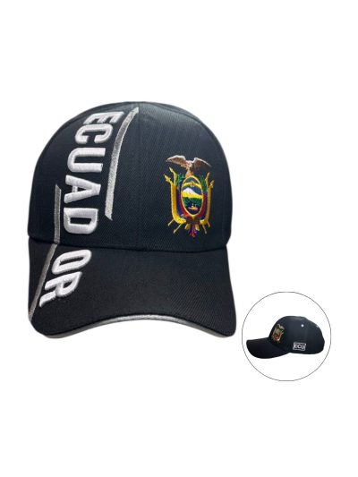 Hermosa Gorra Bordada de Alta Calidad con la Bandera y Escudo de ECUADOR, el bordado refreja los colores Amarillo, Azul y Rojo, banda ajustable de medida de Cabeza Manual, Talla Small - XLarge.